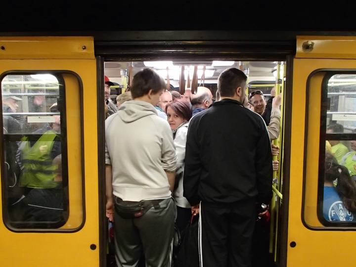 Deák Ferenc tér M1 In der modernen M2 war noch genug Platz, aber in der antiquierten M1 wurde es dann voller. |