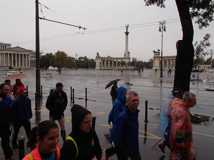 Hősök tere Dózsa György út Auch am Heldenplatz regnete es fröhlich weiter. |