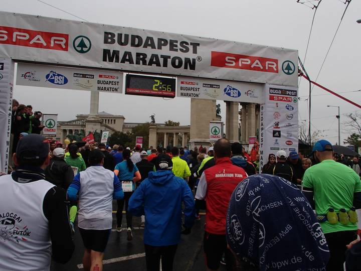 Olof Palme sétány 9.33 Uhr Es dauerte ziemlich genau drei Minute, bis ich über die Startlinie kam. |