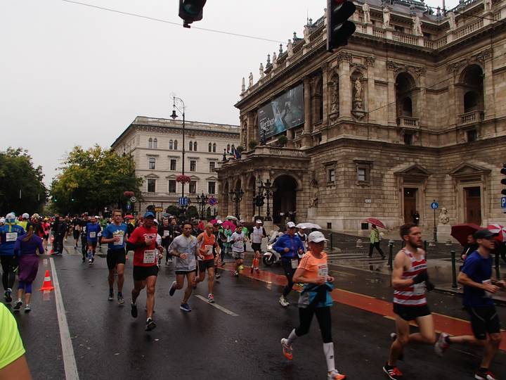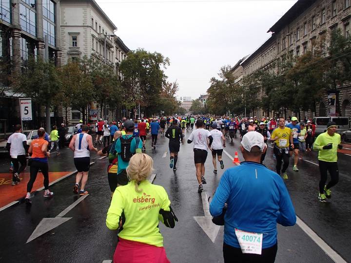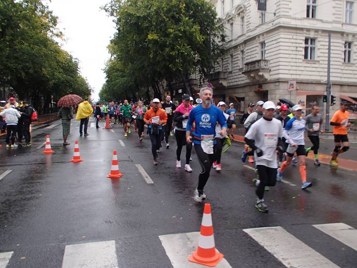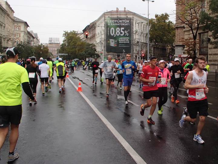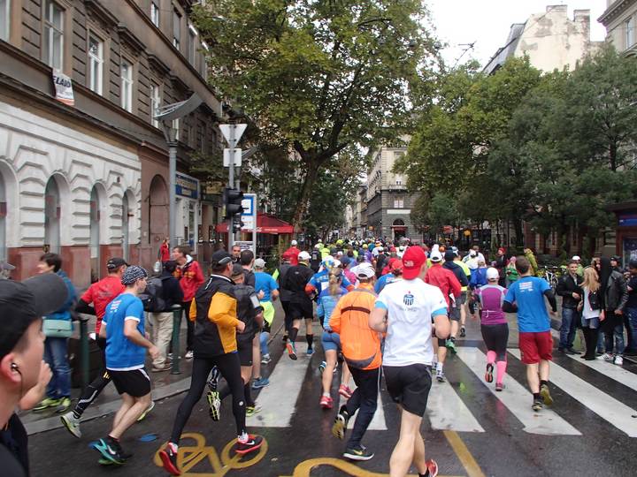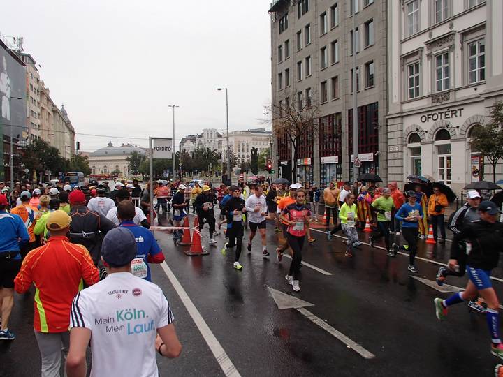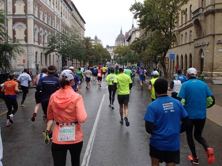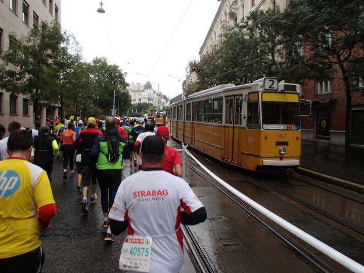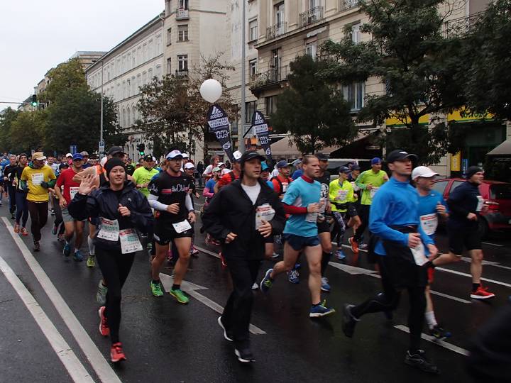 Bajcsy-Zsilinszky út 10.01 Uhr / Km 5,0 27:35 Minuten für die ersten fünf Kilometer. Ein flotter Anfang. Ich wollte gar nicht so schnell angehen, aber ich ließ mich von der Menge und den vielen Eindrücken mitreißen. |