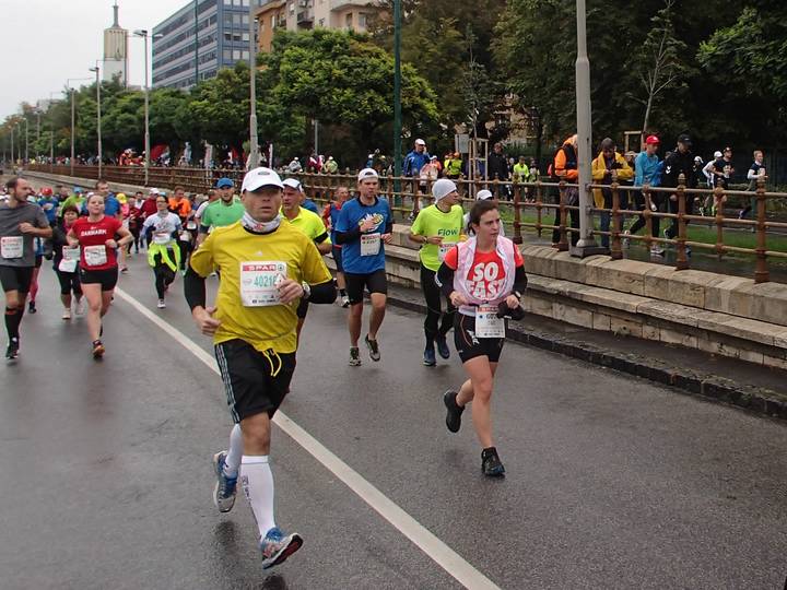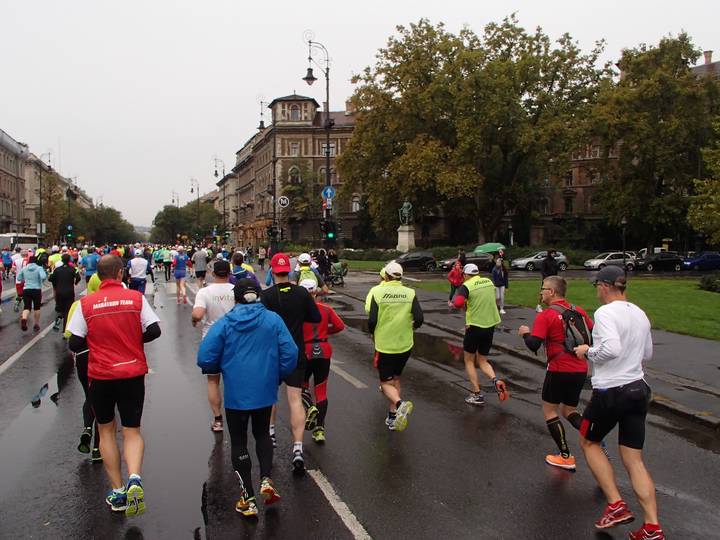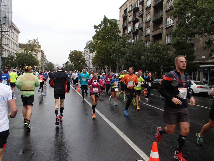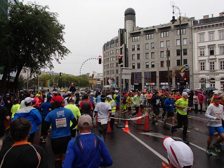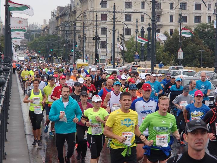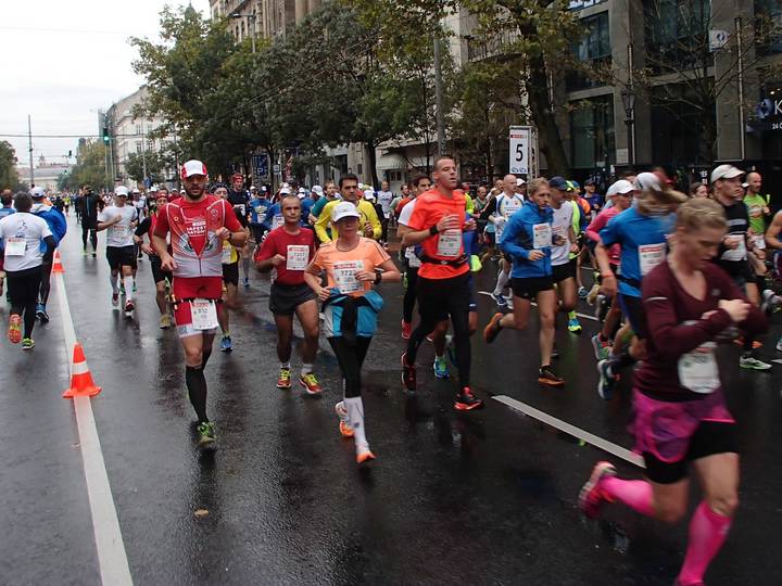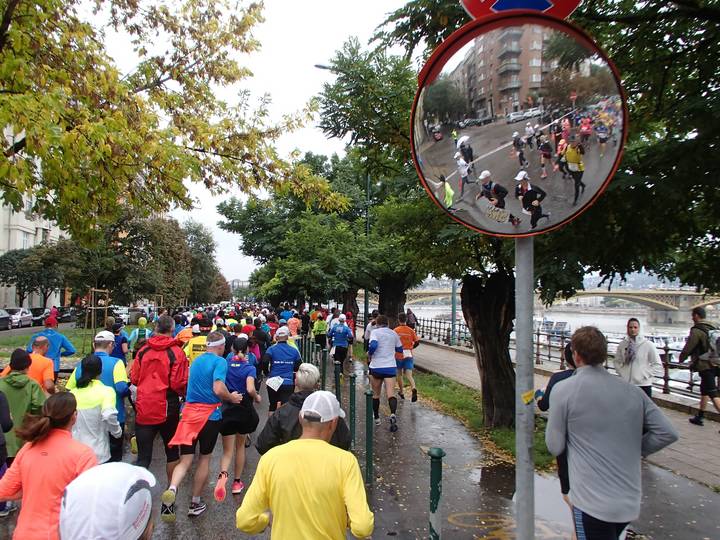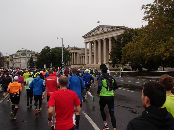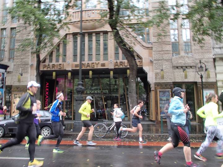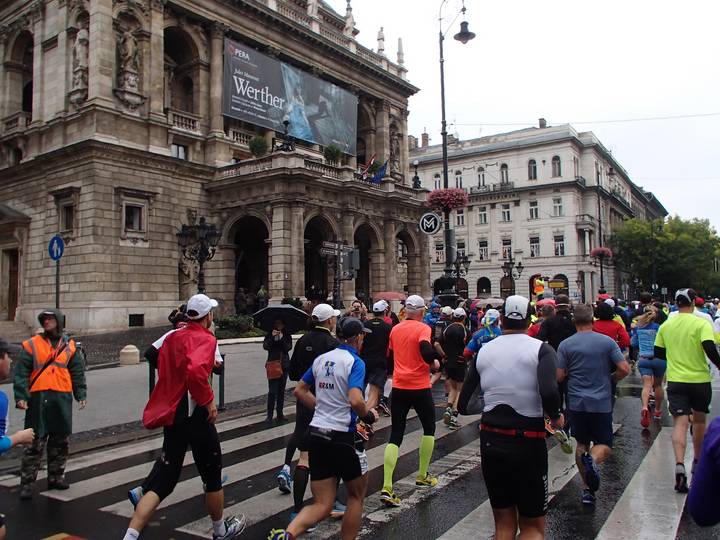 Bajcsy-Zsilinszky út 10.01 Uhr / Km 5,0 27:35 Minuten für die ersten fünf Kilometer. Ein flotter Anfang. Ich wollte gar nicht so schnell angehen, aber ich ließ mich von der Menge und den vielen Eindrücken mitreißen. |