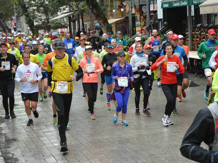 Andrássy út 9.39 Uhr / Km 1 Mein Wunsch war es mal wieder, den Marathon unter vier Stunden zu beenden. Da ich mit einem verletzten Schienbein an den Start kam und zur Entlastungen nur einseitig vernünftig laufen konnte, ein ambitioniertes Unterfangen. |
