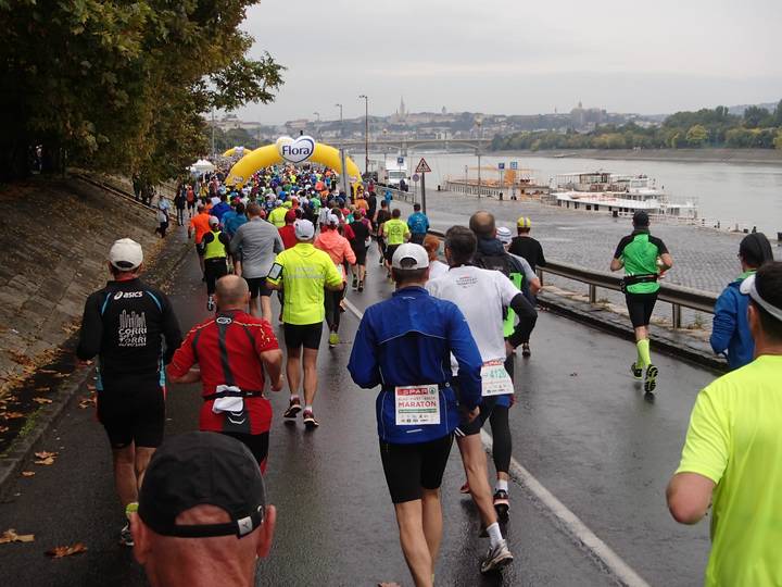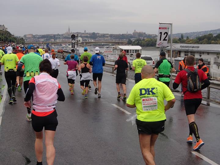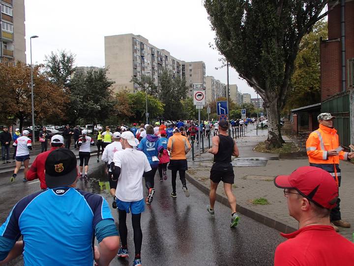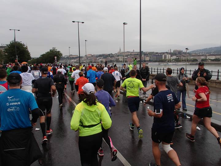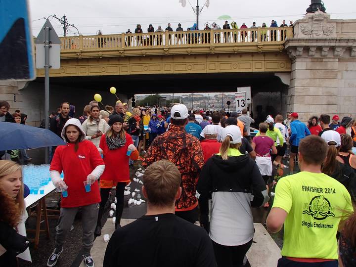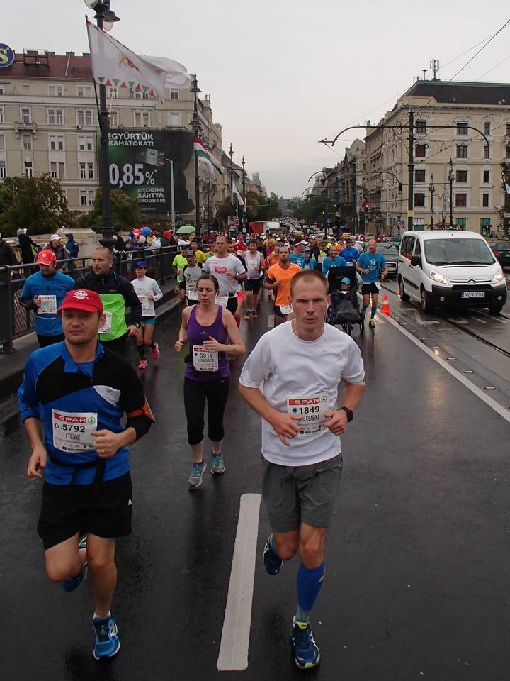 Újpesti rkp 10.44 Uhr / Km 12,6 Hier gab es nur noch, sich mit der Masse treiben zu lassen. |