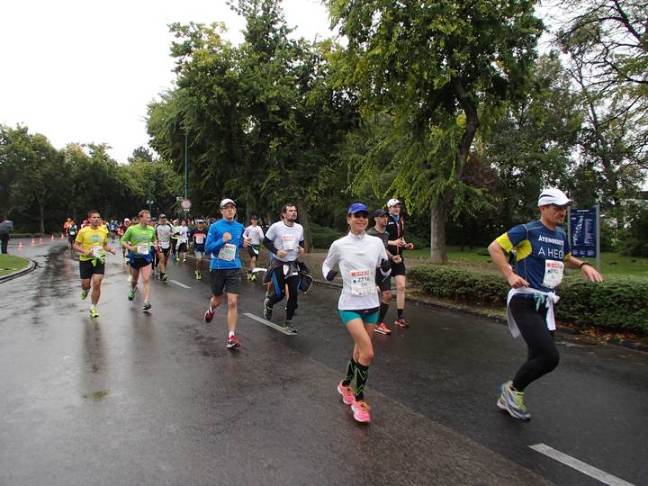 Margitsziget 10.26 Uhr / Km 9,1 Für mich lief es weiter gut. Das Bein tat nicht sehr weh und ich lief weiter mit nur halber Entlastung für die linke Seite. |
