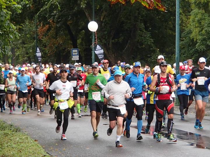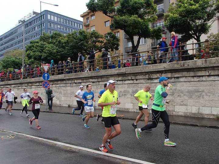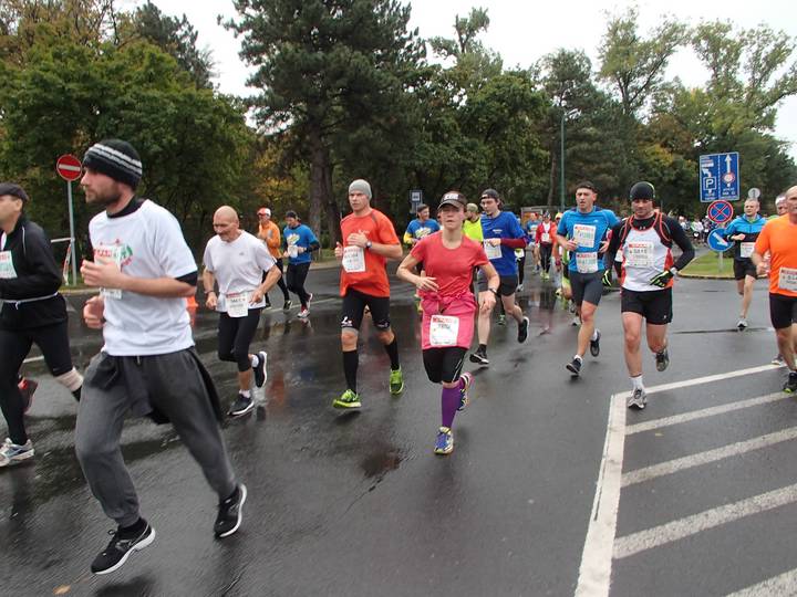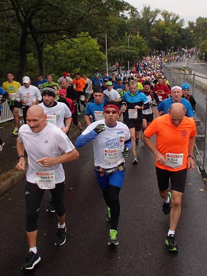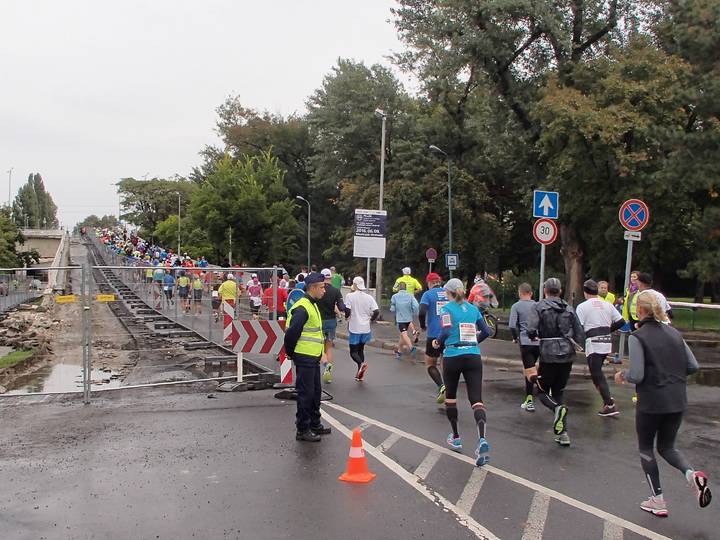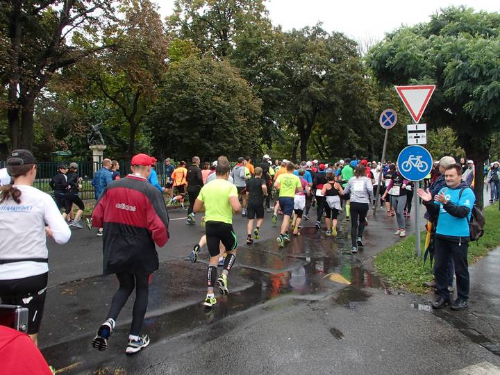 Carl Lutz rkp Újpesti rkp 10.42 Uhr / Km 12,3 Wir trafen nun auf das Feld des 30-Kilometer-Laufes, der hier gestartet wurde und nun dem Marathon-Kurs bis ins Ziel folgen sollte. |