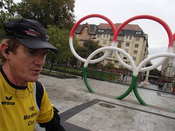 Széchenyi rkp. Olympia Park 10.48 Uhr / Km 13,4 Die Ringe habe ich etwas zu spät entdeckt, sonst hätte ich vielleicht ein besseres Foto geschafft. |
