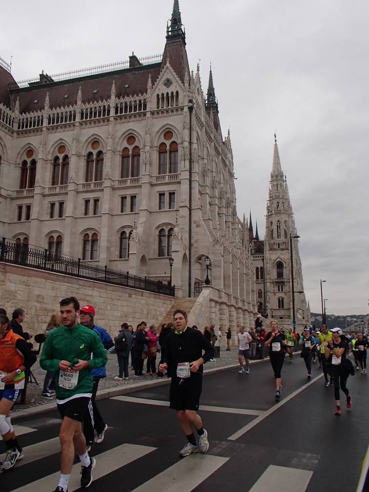 Idősebb Antall József rakpart 12.14 Uhr / Km 28,9 Ich war so fasziniert von der Pracht, daß ich fast einen Radfahrer über den Haufen gelaufen hätte. Wobei... was machen denn Radfahrer auch auf der Laufstrecke? |