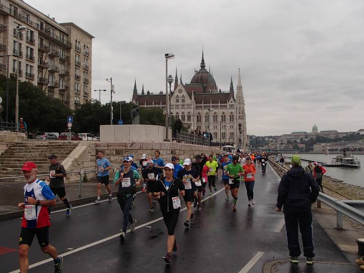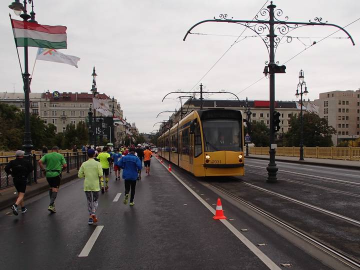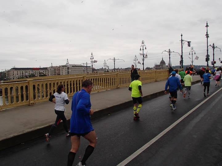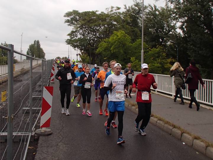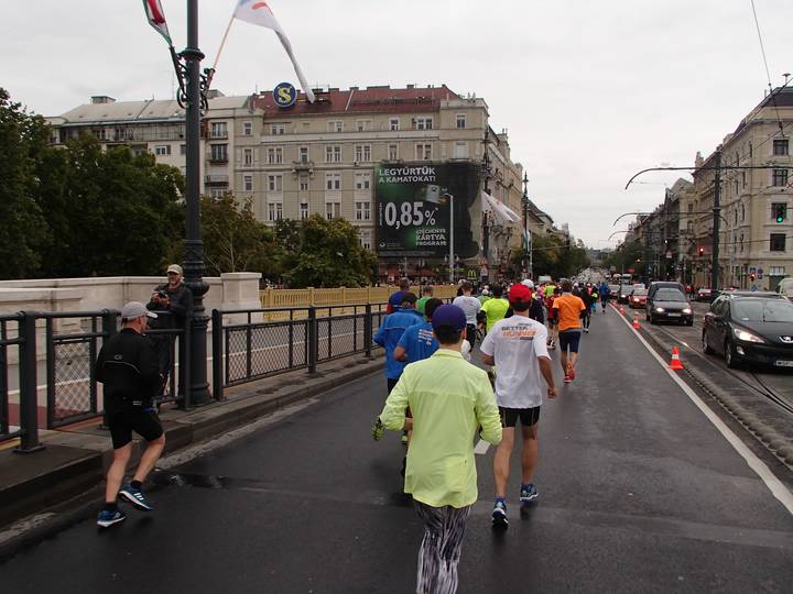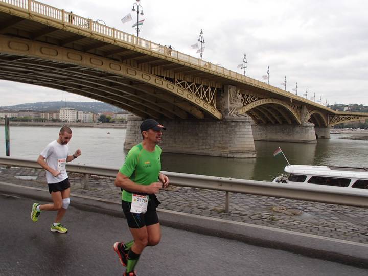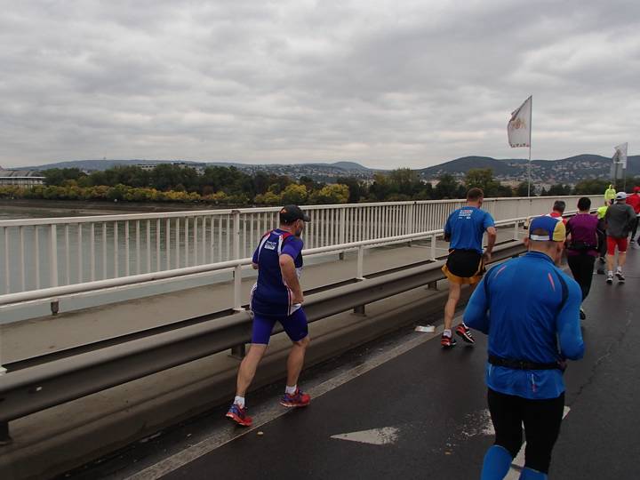 Margit híd 12.54 Uhr / Km 35,6 Bis zum Zielschluß hatte ich noch 2:36 Stunden Zeit. Das wäre ja auch einbeinig zu schaffen gewesen. Foto: Futo Fotó |