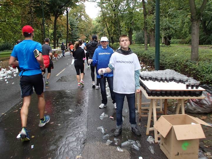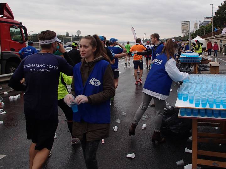 Margitsziget 12.44 Uhr / Km 34,0 Egal. Davon mußten auch zwei Becher in den Hals. Sollte der Bauch doch ein wenig blubbern. |
