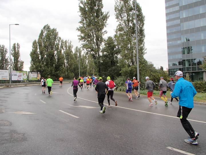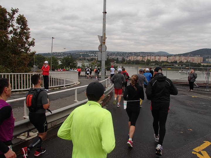 Árpád híd 12.34 Uhr / Km 32,5 Die Strecke von Kilometer 30 bis 36 war die Umkehr der Kilometer 7 bis 13. Dafür durften wir zweimal über die Margitsziget laufen. |