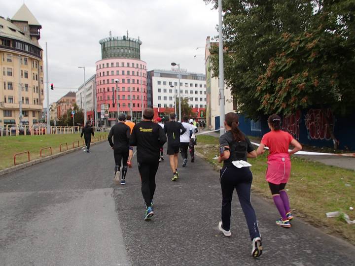 Alkotmány utca 13.03 Uhr / Km 37,0 Jetzt wurde es interessant. Mit der Gehpausen hatte ich die Chance auf eine Zeit unter vier Stunden praktisch schon verspielt, dann kam ich doch wieder ins Laufen, verlor die Zeit wieder beim Akkuwechsel und nun holte ich wieder Zeit auf. |
