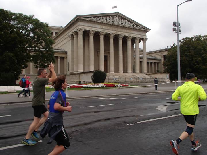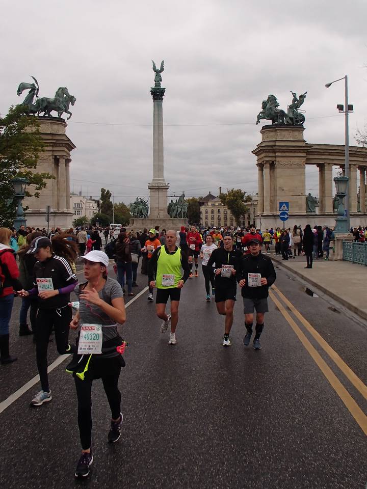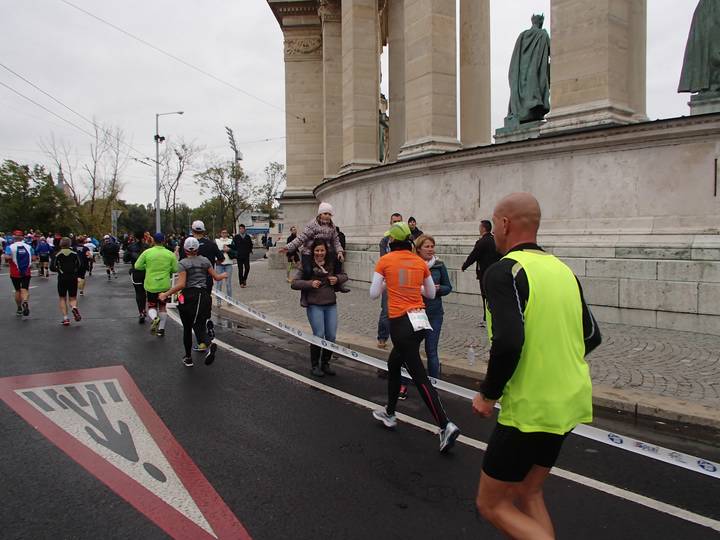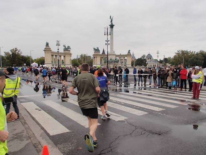 Hősök tere 13.23 Uhr / Km 40,6 Heldenplatz war an diesem Tag ein passender Name für den Platz. Es standen sehr viele Marathon-Finisher am Rande. |