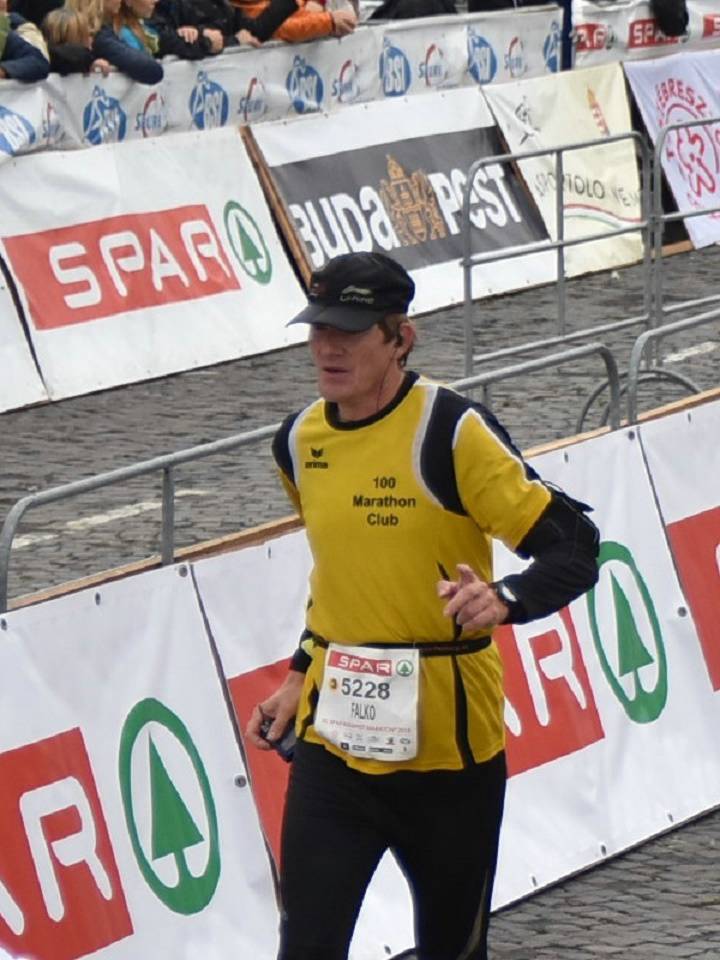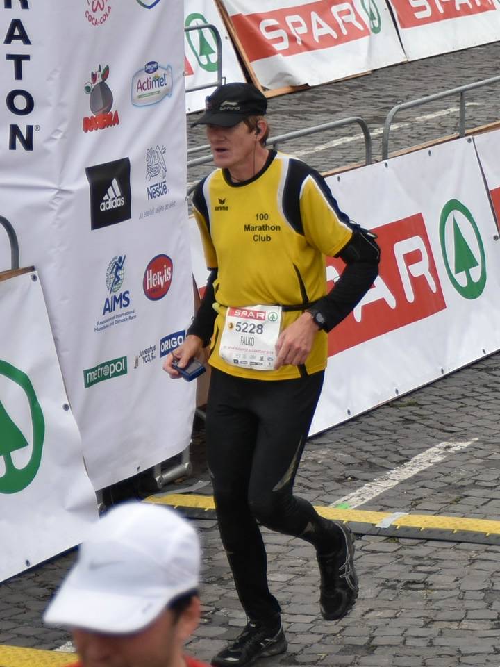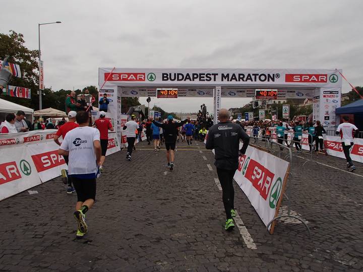 Ötvenhatosok tere 13.32 Uhr / Km 42,18 Zum ersten Mal bei meinen 155 Marathons würde ich unter vier Stunden im Ziel sein, obwohl ich auf der Strecke eine Gehpause einlegen mußte. |