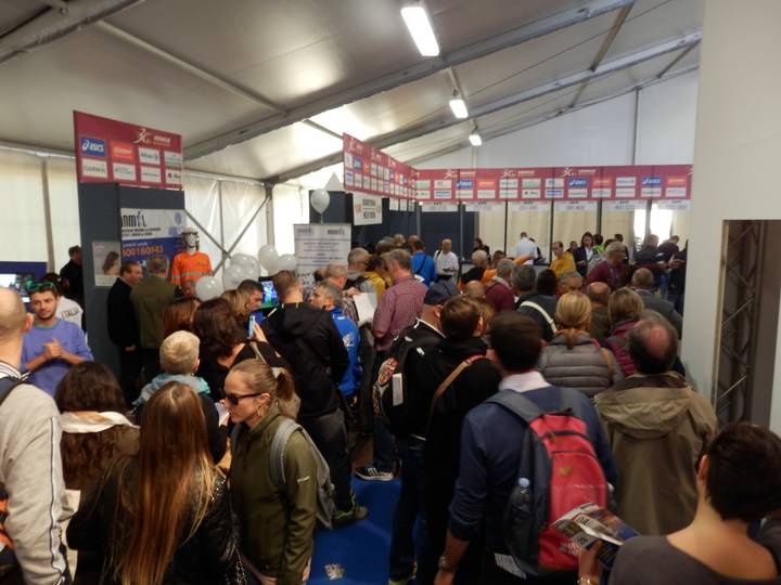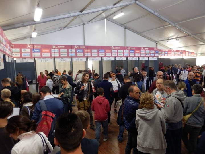 Parco San Giuliano Wer sich nicht gerne von allen Seite anschreien und herumschubsen läßt, der ist auf italienischen Marathon-Messe völlig deplaziert. Also zunächst an die linke Warteschlange anstellen und das ärztliche Attest abgeben und erst dann ging es zu den Startnummern. Wie viele Schreihälse man sparen könnte, würde man da ein Schild hinstellen... |