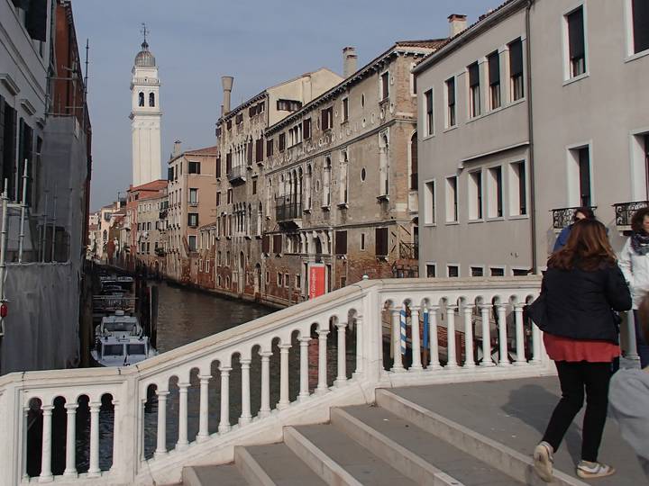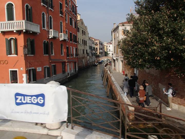 Fodamenta Zattere al Ponte Longo Rio de S. Trovaso 13.19 Uhr / Km 39,2 Brücke 2. Wie alle Brücken waren auch hier die Stufen mit Rampen entschärft. |