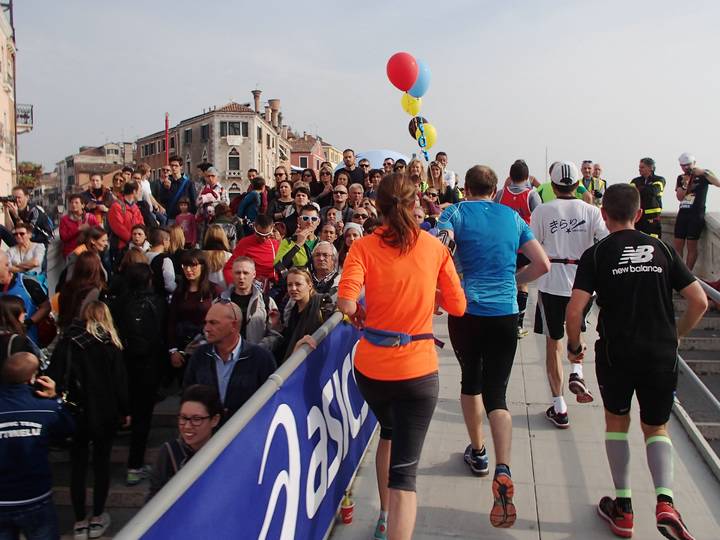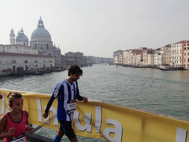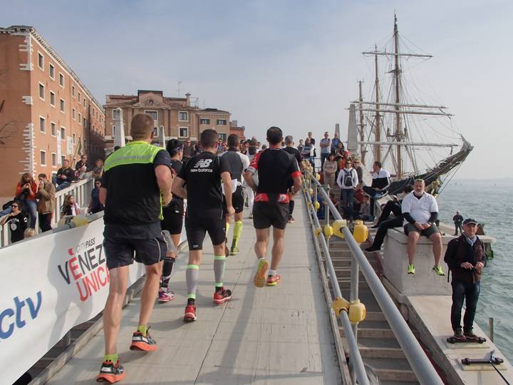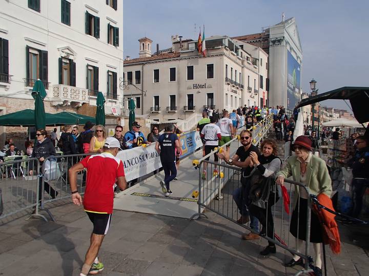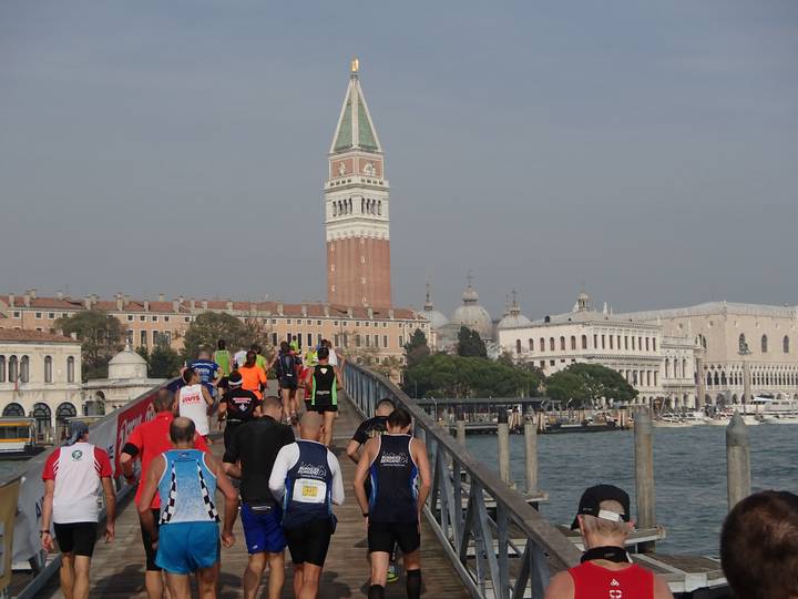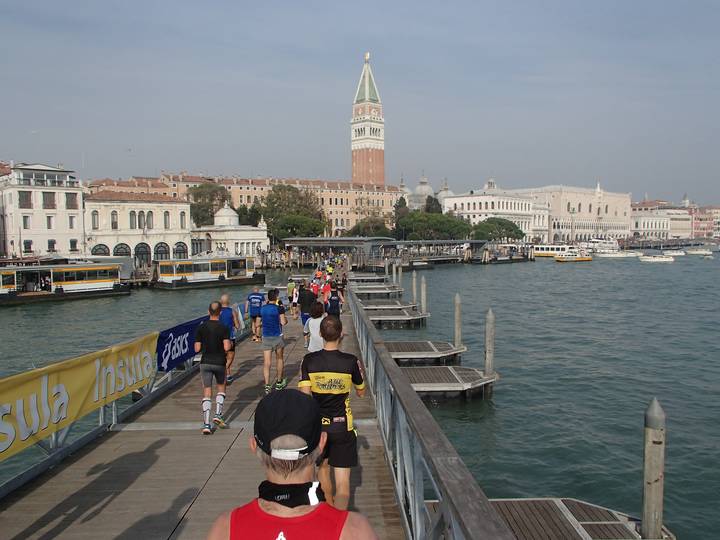 Canal Grande Campanile di San Marco 13.25 Uhr / Km 40,2 Ein Schwimmbrücke über den Canale Grande, die nur für den Marathon gebaut und danach gleich wieder demontiert wird. |