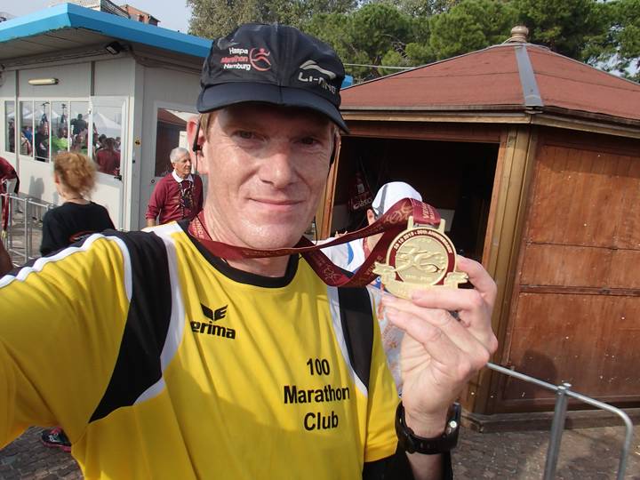 Riva dei Sette Martiri 13.38 Uhr / Km 42,195 Juhu. Meine Marathon-Medaille Nr. 157. Und was für eine hübsche. |