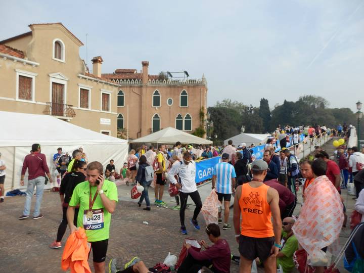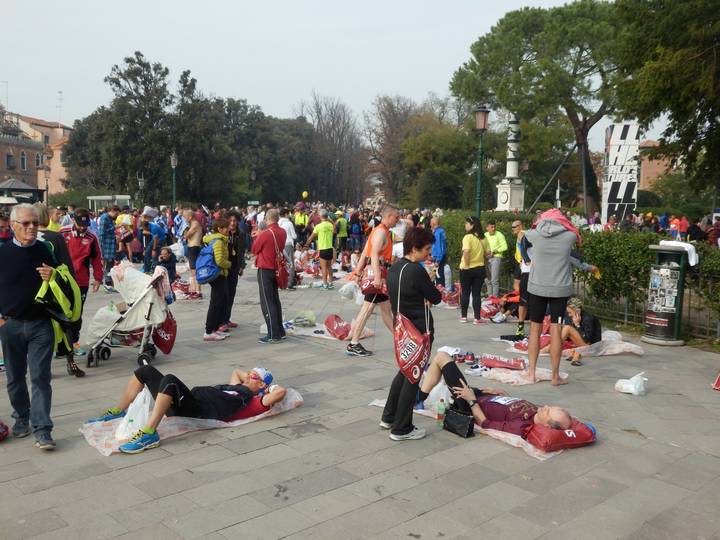 Riva dei Sette Martiri 14.01 Uhr Einmal erfolgreich durch den Zielbereich geschoben. Das ist aber auch immer ein Nervkram in Italien. Die Enge an sich finde ich ja schon grausam, aber die gibt es bei anderen großen Marathons auch. Geradezu zwangsweise. |