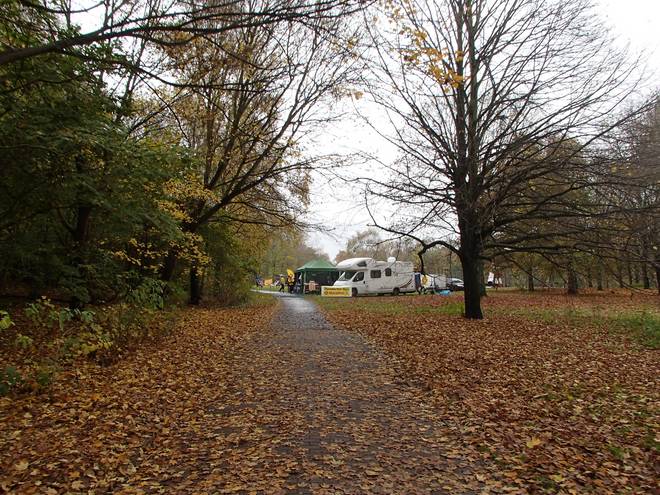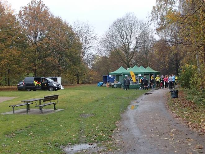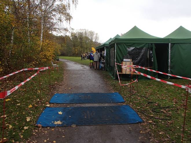 Auftakt 9.02 Uhr / Km 0,05 Mit 15°C war es ziemlich warm für November. Der angekündigte Regen blieb aus. Aber das war schon der vierte Marathon in Folge, für den zwar Regen angekündigt war, jedoch keiner kam. Dafür war es windiger als gedacht, was aber nur ganz im Norden unangenehm auffiel. |