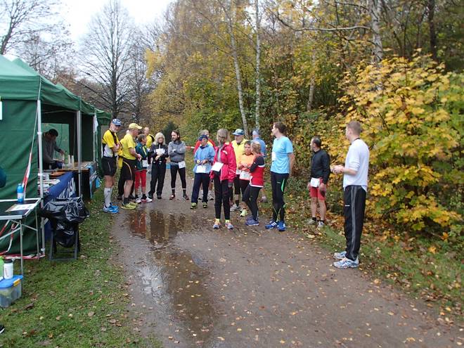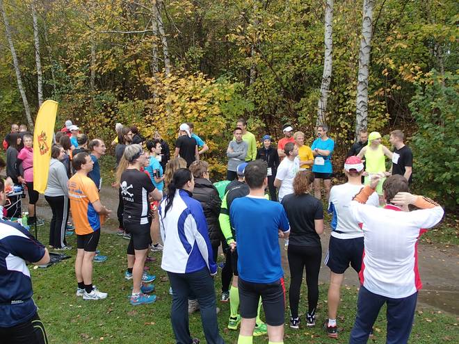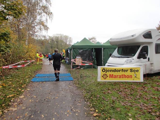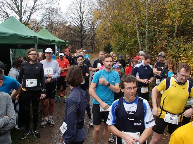 Öjendorfer See 9.01 Uhr 88 Läufer neben mit an der Startlinie. 48 Marathon-Läufer, 22 über 22,66 Kilometer und 18 über 11,33 Kilometer. |