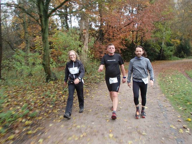 Runde 9 12.24 Uhr / Km 32,5 Das war auch neu. Ich in einem Tempo mit meinem Lieblingsfotografen Hans-Jürgen (vorne) und mit Frühstarterin Sigrid (in gelb und rot). |