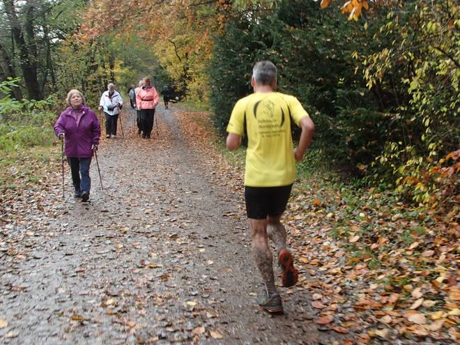 Runde 9 12.27 Uhr / Km 32,9 Jetzt liefen mir Sigrid und Hans-Jürgen auch noch davon. :-) |