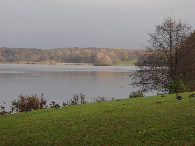 Runde 7 11.28 Uhr / Km 23,8 Blick von Norden auf den Öjendorfer See. |