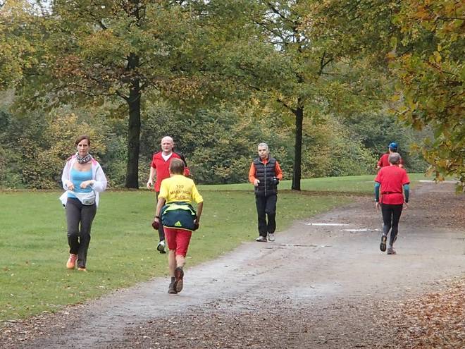Runde 3 10.06 Uhr / Km 9,8 Und schon wurde ich von der späteren Siegerin bei den Damen überrundet. Elke Grünmüller. Mit 3:24:36 Stunden im Ziel war sie fünf Sekunden schneller als meine Öjendorfer Bestzeit. Die lief ich hier im November 2014. |
