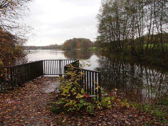 Öjendorfer See 7.59 Uhr Die Vortage hatte es ausgiebig geregnet und so gab es den ersten See schon weit abseits des eigentlichen Öjendorfer Sees. |