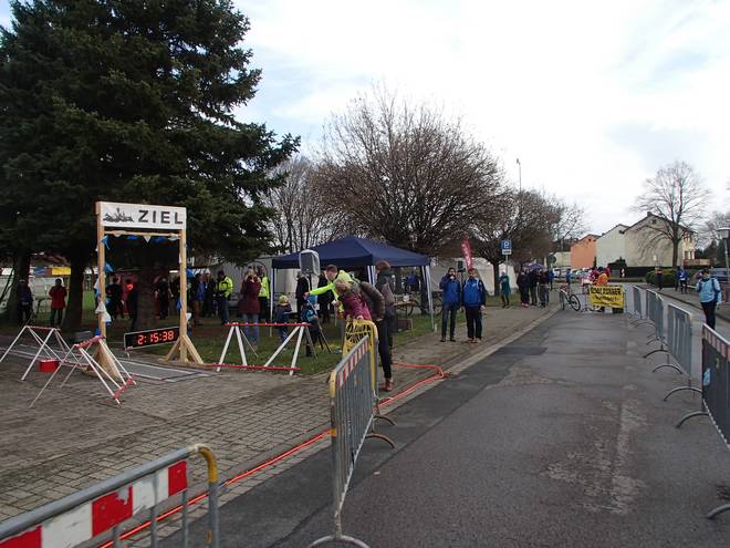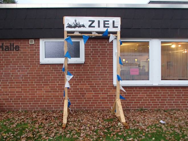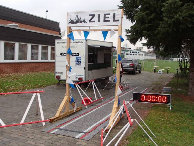 An der Sporthalle 9.55 Uhr Gut. Kurz vor dem Start stand das Zieltor an einer weitaus praktischeren Stelle. |