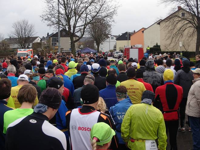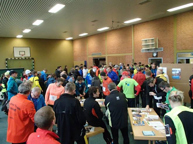 An der Sporthalle 9.58 Uhr Am Start waren 213 Marathon-Läufer, 212 Halbmarathon-Läufer, 22 Staffel-Läufer, 16 Wanderer und eine Starterin über 10 Kilometer (jedenfalls tauchte sie so in der Ergebnis-Liste auf). |