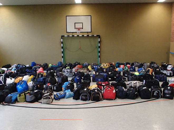 An der Sporthalle 9.45 Uhr Gepäckabgabe. |