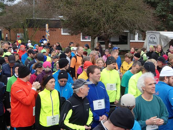 An der Sporthalle 9.58 Uhr Macht zusammen 464 Läufer. Der Regen hatte inzwischen aufgehört, kalt war es aber immer noch. Und windig. |