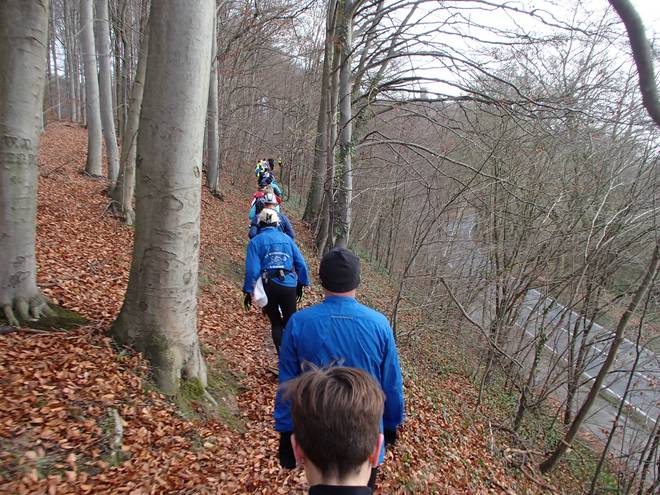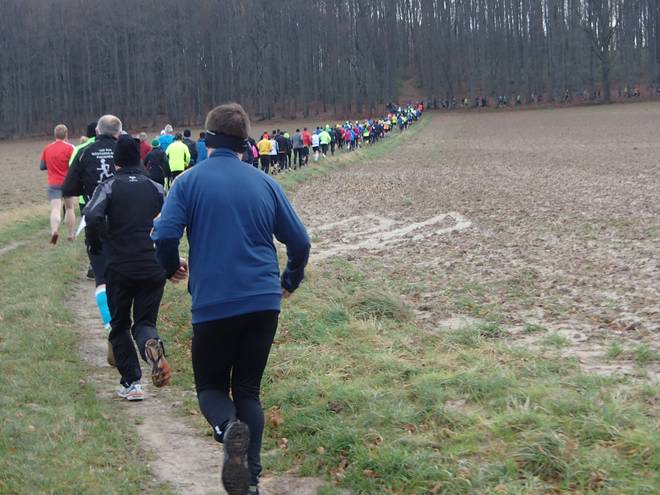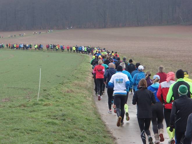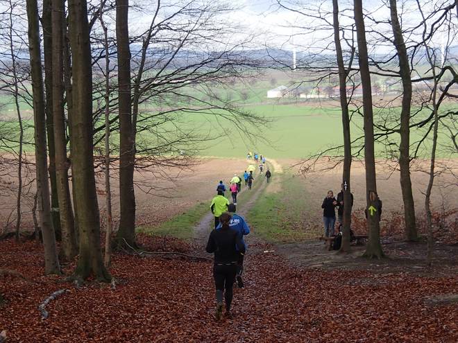 Schrotacker 10.11 Uhr / Km 2,0 In langer Schlange ging es nun leicht bergauf zum Adenser Berg. |