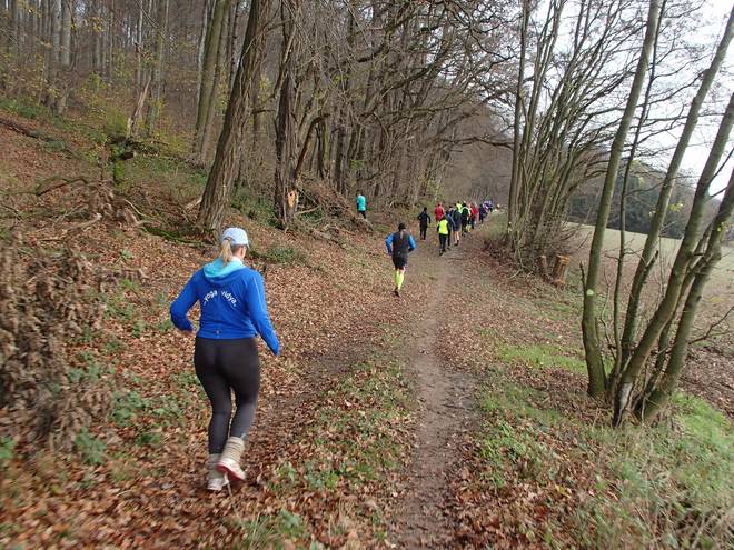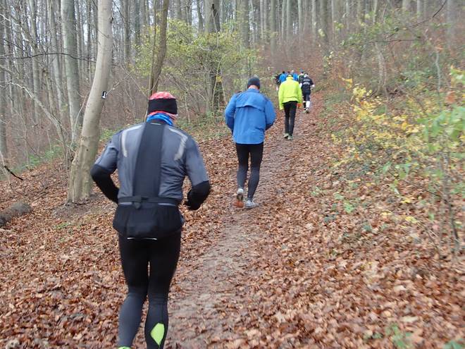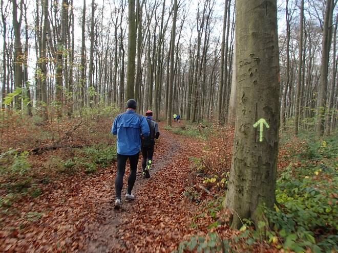 Adenser Berg 10.52 Uhr / Km 7,0 Die Wege waren trotz des Laubs gut zu laufen. Es ging nun mal etwas bergauf und etwas bergab und war endlich mal einfach zu laufen. |