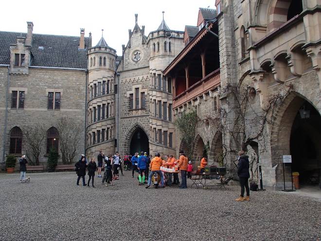 Schloß Marienburg 10.42 Uhr / Km 5,8 Ein Verpflegungsstand im Schloßhof. Das hat doch was. |