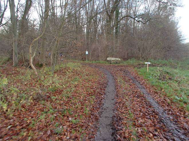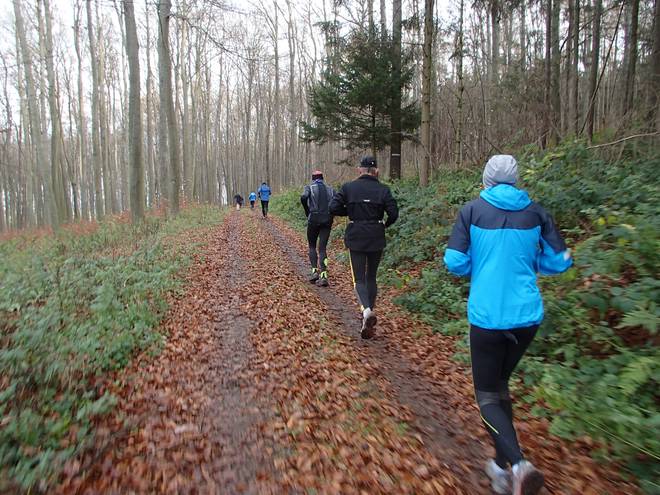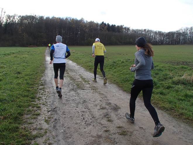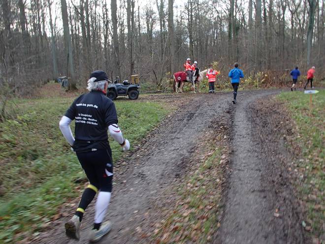 Hallerburger Holz 11.37 Uhr / Km 14,6 Der Boden sieht matschig aus, war er auch an einigen Stellen, aber meist lief es sich gut. |