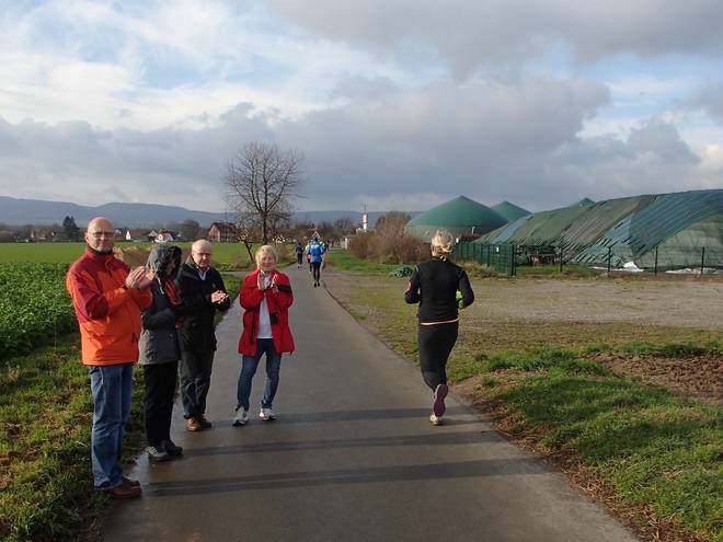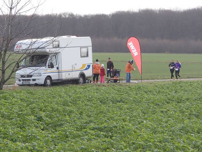 Schrotacker 11.06 Uhr / Km 9,3 Ein paar Zuschauer gab es an der Strecke. Für so einen eher kleinen Lauf gar nicht mal so wenige. Immer mal wieder. |