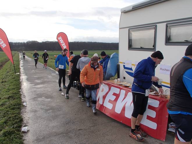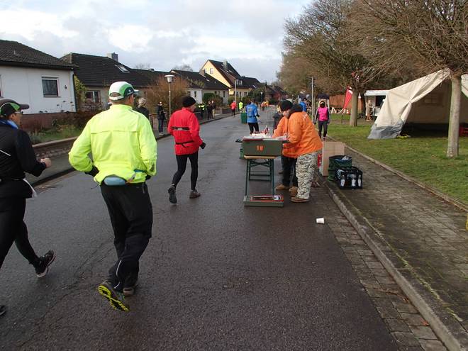 An der Sporthalle 12.15 Uhr / Km 21,0 Und schon war die erste Hälfte der Strecke geschafft. Es war trocken, mir ging es gut, die zweite Hälfte konnte kommen. Also alles noch einmal von vorne. |