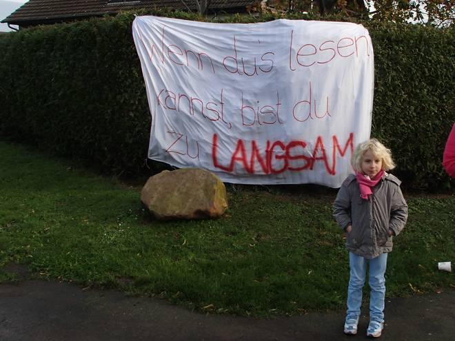 Pussenweg / Neustadt 11.16 Uhr / Km 11,0 Nicht neu, aber immer wieder nett zu lesen. So wurden wirgg aus Nordstemmen-Adensen verabschiedet. |