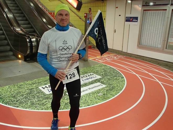 S-Bahn-Station Jungfernstieg Startnummer 128: Jens Kruse aus Kiel. Damit war auch die Stadt vertreten, mit der sich Hamburg zusammen um die Olympischen Spiele bewerben wollte. |