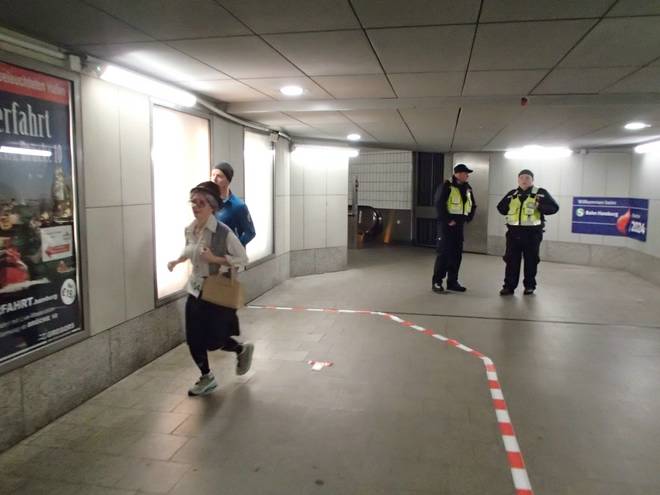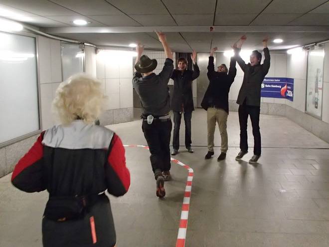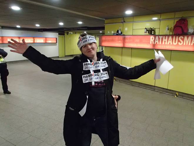 S-Bahn-Station Jungfernstieg 21.53 Uhr Der Marathon sorgte schon für Aufmerksamkeit. Die Presse war da und die zufällig vorbei kommenden Passanten blieben auch zum Teil stehen. |