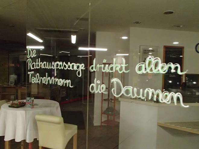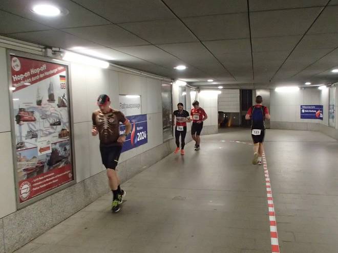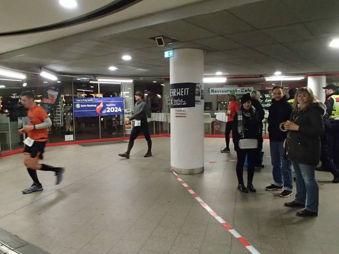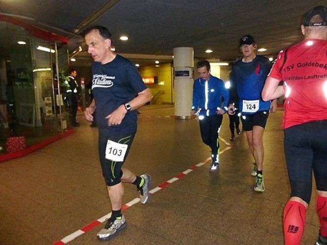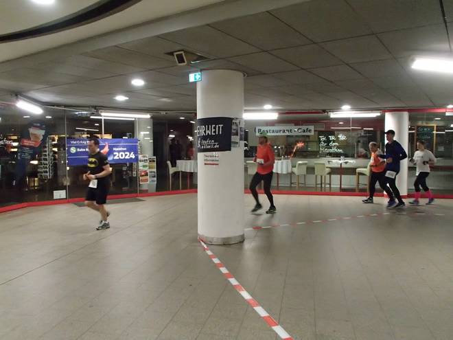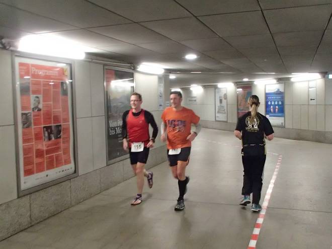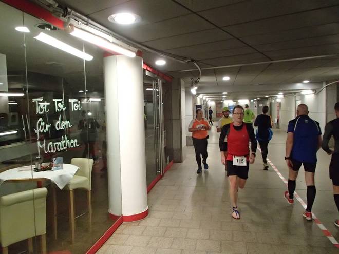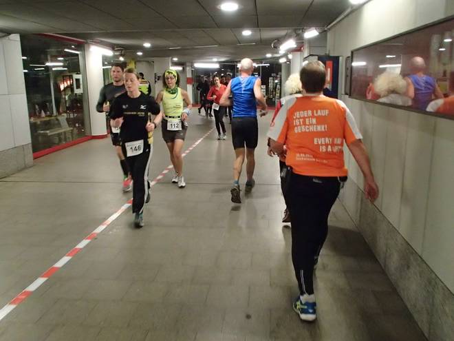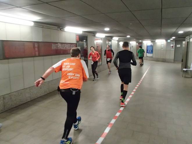 Rathauspassage 5.15 Uhr Als ich mich auf den Weg machte, waren immer noch elf Läufer unterwegs. Bis 6.57 Uhr würden es aber alle noch ins Ziel schaffen. |