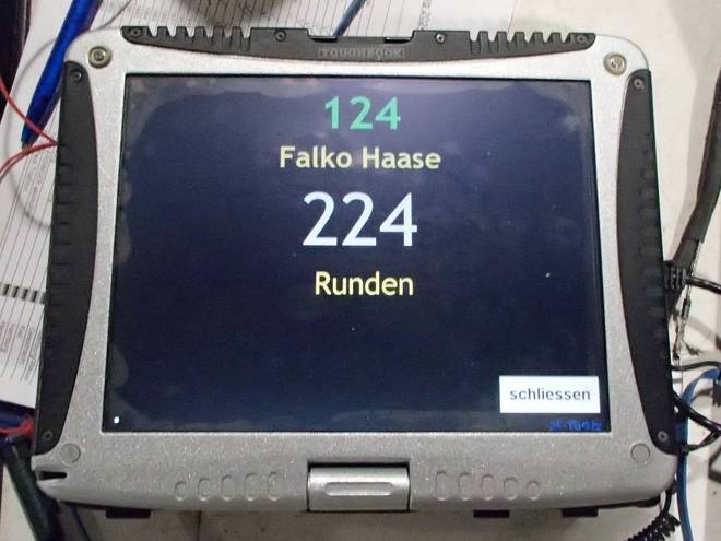 Runde 224 3.06 Uhr / Km 31,36 Fünf Stunden, 224 Runden. 41 Runden in der fünften Stunde. Im Schnitt immer noch unter 1:30 Minuten pro Runde. |
