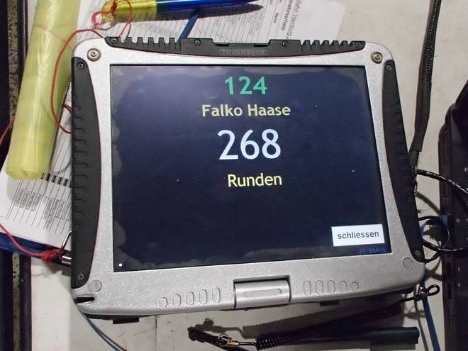 Runde 246 3.35 Uhr / Km 34,44 Nach 5:28:15 Stunden hatten wir einen Sieger. Toni Hecker hatte als erster die 302 Runden bewältigt. |