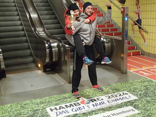 S-Bahn-Station Jungfernstieg Sonia Isabel Goebel und Toni Hecker. Das Gewinner-Doppel der Marathon-Nacht. |