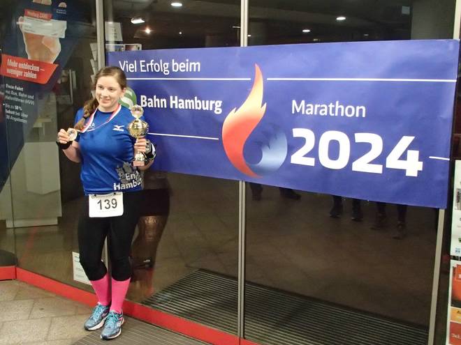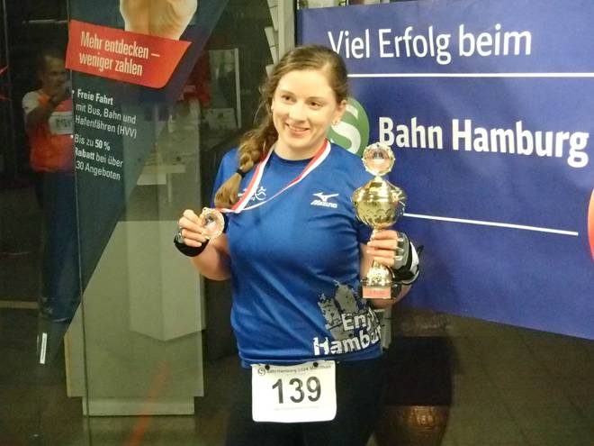 S-Bahn-Station Jungfernstieg Damen-Siegerin Sonia Isabel Goebel. Den netten Siegerin-Träger konnte ich allerdings nicht zuordnen. |