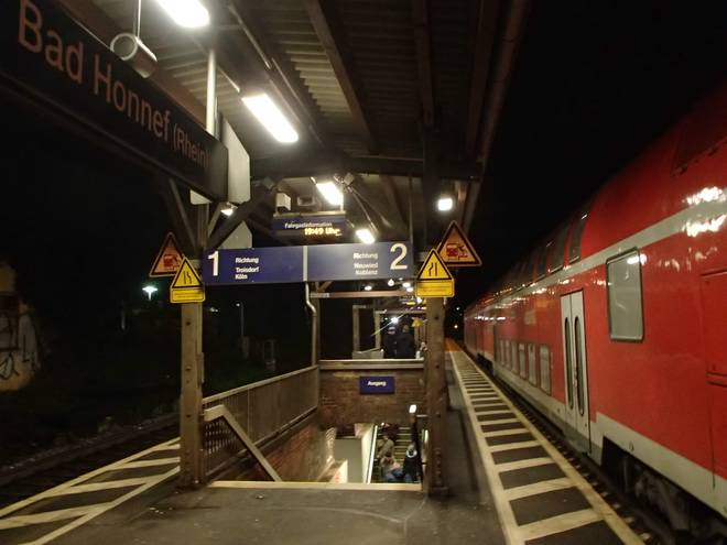 12. Dezember 2015 Bahnhof Bad Honnef 19.49 Uhr Die Anreise aus Osnabrück hatte prima geklappt. Damit war schon einmal die Gefahr gebannt, die Zugverbindungen könnten nicht klappen und der Zeitplan auseinander fallen. |