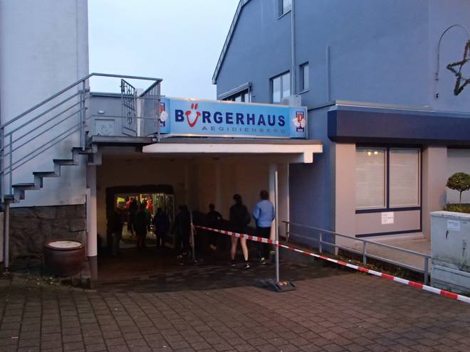 Bürgerhaus Aegidienberg 08.29 Uhr Das Ziel stand auch schon. Man läuft tatsächlich am Ende ins Bürgerhaus rein. |
