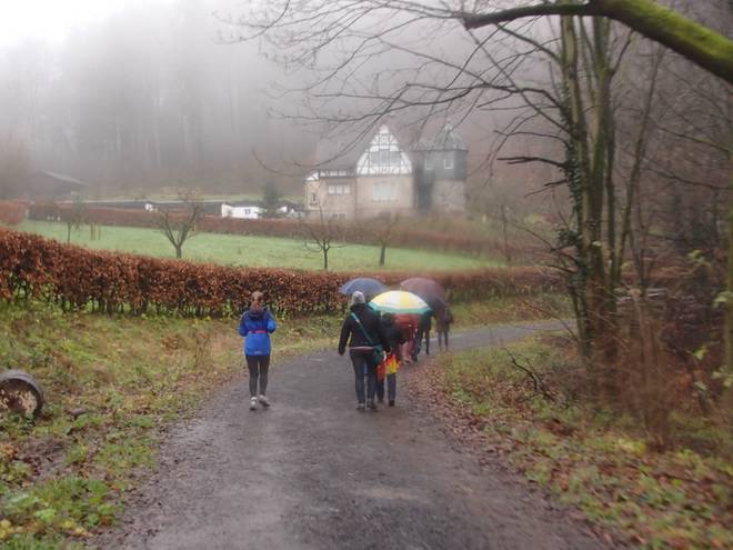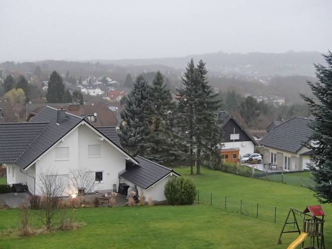 Aegidienberg 08.41 Uhr Mit 8°C war es für Dezember zwar recht warm, aber dafür regnete es. Schönes Wetter war etwas anderes. Zwar wäre ich auch nicht so gerne durch den Schnee gestapft, aber besser als Regen wäre es allemal gewesen. Und hätte schöner ausgesehen. |